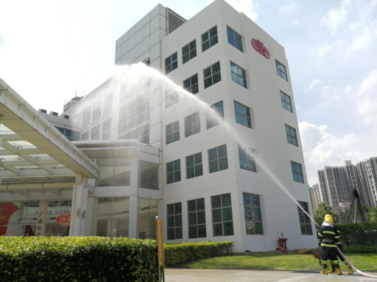 伴隨著演練工作人員各就各位后,演練項(xiàng)目總指揮孫維廣董事長的一聲令下:“開始演練”拉開了演練的序幕。工作人員用對講機(jī)向各工作組傳達(dá)演練開始,辦公樓樓三樓外平臺及天臺上開始冒起了“濃煙”,大樓內(nèi)響起消防警鈴聲,消防廣播開始播音通知,通知大樓內(nèi)所有員工開始緊急疏散。由各樓層的疏散組成員馬上組織本區(qū)域的員工從安全疏散通道快速撤離,將員工安全疏散到指定的空曠安全集結(jié)點(diǎn)集結(jié)清點(diǎn)人數(shù)。各演練工作組也同步展開相應(yīng)工作。保衛(wèi)、通訊組成員立即在主要路口拉開警戒線防止無關(guān)人員車輛進(jìn)入。滅火組成員分成東、西兩組迅速攜帶消防水帶利用周邊消防栓對火勢進(jìn)行兩路壓制撲救,救援組也迅速組織了相關(guān)人員帶著擔(dān)架,拿好醫(yī)藥箱到集結(jié)點(diǎn)等待救援命令。在義務(wù)消防隊(duì)員兩路水槍的奮力撲救下火勢已得到了控制,人員全部疏散完畢,沒有人員受傷。