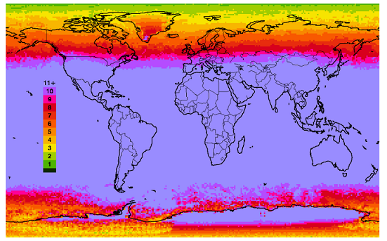 紫外線指數(shù)值越高,意味著對(duì)皮膚和眼睛造成傷害的可能性就越大,發(fā)生傷害所需的時(shí)間就越短。