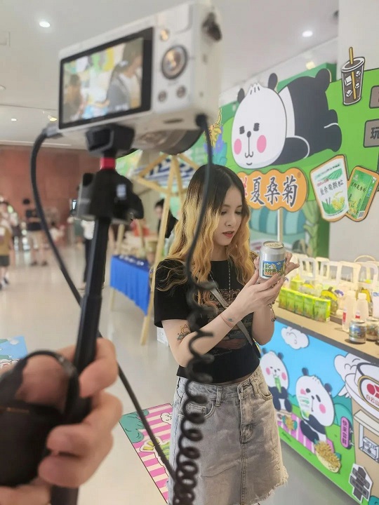 活動現(xiàn)場,吸引了來自全國各地的游客,還有不少網(wǎng)紅小姐姐小哥哥前來直播打卡。主播阿煩寶進行了廣東專屬“冰廣式”現(xiàn)場測評,驚呼:“泰褲辣!涼茶印象中苦苦的不太能接受,這種創(chuàng)新冰廣式比想象中還好喝,易拉罐式樣的也很潮很好看。”