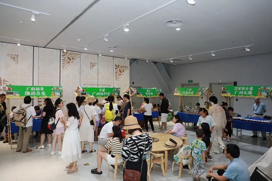 夏桑菊制作技藝、廣府越秀雕銀點金、 廣州織金彩瓷、非遺·廣州西村窯、 佛山黎家獅、 國家級非遺廣州玉雕、古琴藝術、粵語講古等等,各展位都吸引了許多游客和非遺愛好者觀看、互動、打卡拍照。