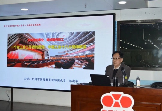 最后,為深入傳達(dá)落實(shí)中國工會十八大精神,充分發(fā)揮職工民主管理作用,公司工會特別邀請了高級政工師(副教授)、廣州市第六七屆國防教育講師團(tuán)成員鄒建華老師向職工代表宣講中國工會十八大精神。鄒老師以一個老工會工作者的經(jīng)驗(yàn),由淺入深地為職工代表們解讀中國工會第十八次全國代表大會等精神,從多維度為大家講授當(dāng)前工會工作的新理論、新實(shí)踐,增強(qiáng)職工代表的履職能力,動員職工積極建功新時代,全力助力星群公司高質(zhì)發(fā)展。