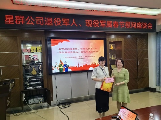 隨后,大家紛紛表示,今后將不忘初心,永葆軍人本色,以良好的道德情操、昂揚(yáng)的精神風(fēng)貌、飽滿的工作熱情干好本職工作,為公司高質(zhì)量發(fā)展做出新的貢獻(xiàn)。座談會(huì)結(jié)束前星群公黨委書記、董事長胡文新,黨委副書記、工會(huì)副主席鄺敏儀分別為退役軍人、現(xiàn)役軍屬送上春節(jié)慰問品。