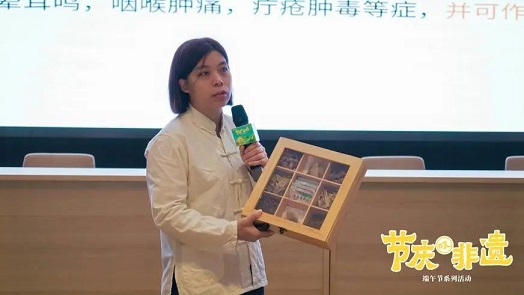 端午節(jié)正值仲夏,天氣炎熱潮濕,容易滋生病毒。古人認(rèn)為,在此時(shí)通過佩戴香囊、掛艾葉、喝雄黃酒等方法,可以驅(qū)趕蜈蚣、毒蛇、蝎子、壁虎和蟾蜍“五毒”。時(shí)至今日,“避五毒”的習(xí)俗被賦予了更豐富的內(nèi)涵。端午佩香囊這個(gè)傳統(tǒng)習(xí)俗,逐漸演變成為人們祈求平安、健康的節(jié)日活動(dòng)。在活動(dòng)現(xiàn)場,傳承人帶領(lǐng)學(xué)員制作二天油香囊,讓芳香與學(xué)員做伴。