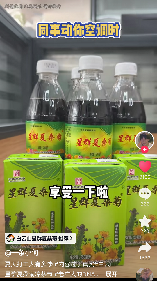以網(wǎng)聯(lián)心,借網(wǎng)發(fā)力,本屆涼茶文化節(jié),白云山星群還在抖音短視頻平臺(tái),聯(lián)動(dòng)了多領(lǐng)域的人氣網(wǎng)紅,包括@一條小何、@大頭澤子等。目前,抖音平臺(tái)發(fā)布#白云山星群夏桑菊涼茶節(jié)#話題播放量已達(dá)2846.9萬(wàn)次,收獲點(diǎn)贊量數(shù)十萬(wàn),引發(fā)數(shù)萬(wàn)名網(wǎng)友展開(kāi)激烈討論……嶺南涼茶非遺文化,正在短視頻領(lǐng)域中大放異彩,以更新潮的方式,走進(jìn)年輕人的視界,讓更多人感受到了涼茶文化的多元魅力。
