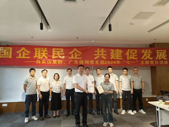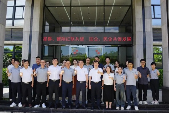 為進一步深化落實“紅聯(lián)共建”工作機制,扎實推進黨紀學(xué)習(xí)教育,促進企業(yè)共同發(fā)展。星群公司與重點客戶中的民營企業(yè)“健翔藥業(yè)”在7月17日聯(lián)合舉辦紅聯(lián)共建“七一”主題黨日活動。星群公司黨委書記、董事長胡文新,健翔藥業(yè)董事長凌華耀,星群公司總經(jīng)理賀慶、黨委副書記鄺敏儀以及雙方企業(yè)8名黨支部的書記、黨員代表等20余人參加了活動。
