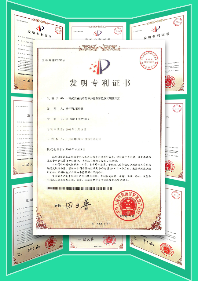 科技賦能發(fā)展,創(chuàng)新決勝未來。白云山星群始終積極推動夏桑菊的科研創(chuàng)新,共獲得10多項與夏桑菊顆粒相關(guān)的發(fā)明專利,并憑借“夏桑菊制劑的制備方法(專利號:ZL 2008 1 0029096.9)”發(fā)明專利以及“一種抗流感病毒的中藥有效部位及其制備方法(專利號:ZL 2006 1 0005382.2)” 發(fā)明專利,在2016年、2021年分別獲得“中國專利優(yōu)秀獎”,以專利矩陣夯實了星群夏桑菊顆粒劑的核心產(chǎn)品競爭力。