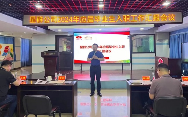 2024.8.22 7月31日,星群公司召開了2024年新入職高校畢業(yè)生工作匯報(bào)會(huì)議。公司黨委書記、董事長胡文新,黨委副書記、總經(jīng)理賀慶,黨委副書記、工會(huì)主席鄺敏儀和相關(guān)部門負(fù)責(zé)人出席了本次會(huì)議。