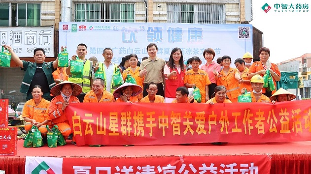 8月24日,在中山市港口鎮(zhèn)黨委書記的見證下,星群公司粵西大區(qū)許喜濤帶領(lǐng)中珠江聯(lián)絡(luò)處人員在中山市港口鎮(zhèn)攜手中山市中智大藥房連鎖有限公司開展第四屆廣藥白云山星群夏桑菊涼茶文化節(jié)暨關(guān)愛戶外工作者公益活動(中山站),星群公司總經(jīng)理賀慶、中智公司總經(jīng)理沈嫚娜及港口街道負(fù)責(zé)人一并出席活動。同時,白云山星群準(zhǔn)備了一系列的夏桑菊涼茶等消暑解渴的降溫物資,贈予中山港口鎮(zhèn)環(huán)衛(wèi)站的工人。環(huán)衛(wèi)工人們對白云山星群及大參林的關(guān)懷表示了衷心的感謝。