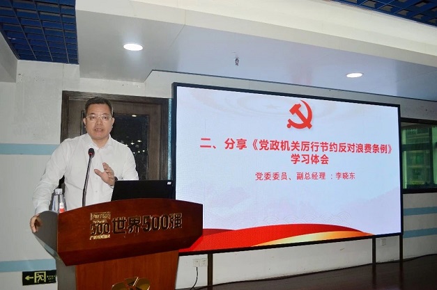 公司黨委委員、副總經(jīng)理李曉東結合分管工作,就深刻認識《條例》修訂的重要意義、勇于檢視厲行節(jié)約的著力點、國企干部如何落實厲行節(jié)約反對浪費等方面分享了對學習《條例》的心得體會。