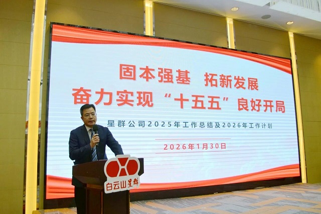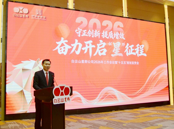 1月30日下午,星群公司召開公司2026年度工作會議暨“十五五”規(guī)劃宣貫會,系統(tǒng)總結公司2025年及“十四五”期間改革發(fā)展的成效與經驗,科學謀劃“十五五”發(fā)展路徑,部署2026年重點工作,全力以赴推動“十五五”發(fā)展開好局、起好步。廣藥白云山高管劉菲受邀出席會議,公司領導班子成員、中層以上管理人員、高層次人才、獲獎代表、后備干部及員工代表等120余人參加會議。